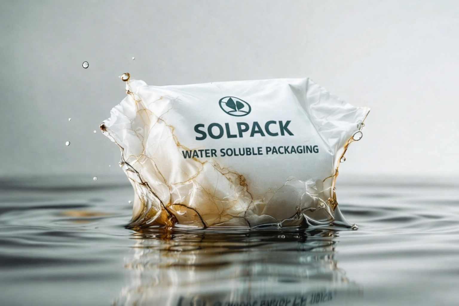 Solpack is an name of innovative, global packaging solution that completely dissolves upon contact with water within minutes, leaving no waste, microplastics, or harmful residues behind.